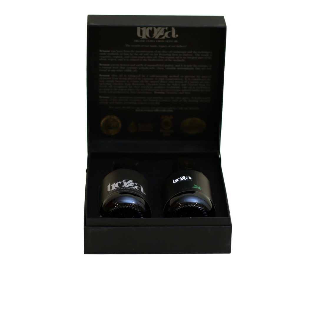 Offrez l’excellence de l’huile d’olive tunisienne avec ce coffret cadeau signé Trozza. Un élégant assortiment d’huiles d’olive extra vierge aux arômes authentiques, idéal pour les amateurs de saveurs fines et naturelles.